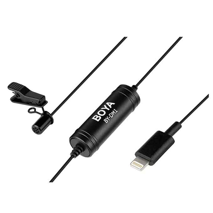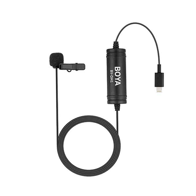 - Lightning connector for iOS Devices Omnidirectional clip-on microphone.