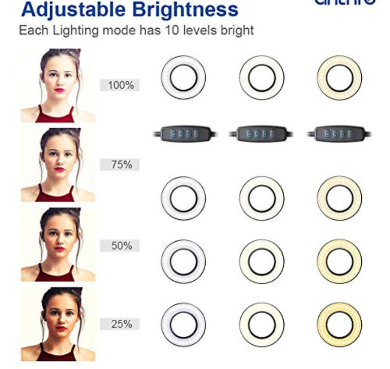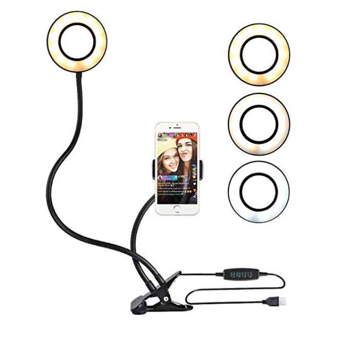 Ring light mobile stand has the option of multiple hues and different brightness settings. You can choose from available three light colors and for brightness you can select from 10 levels of brightness for your work like: selfies, makeup or dark scenery recording. This saves your time from the struggle of finding the right cell phone for selfies and recording videos.