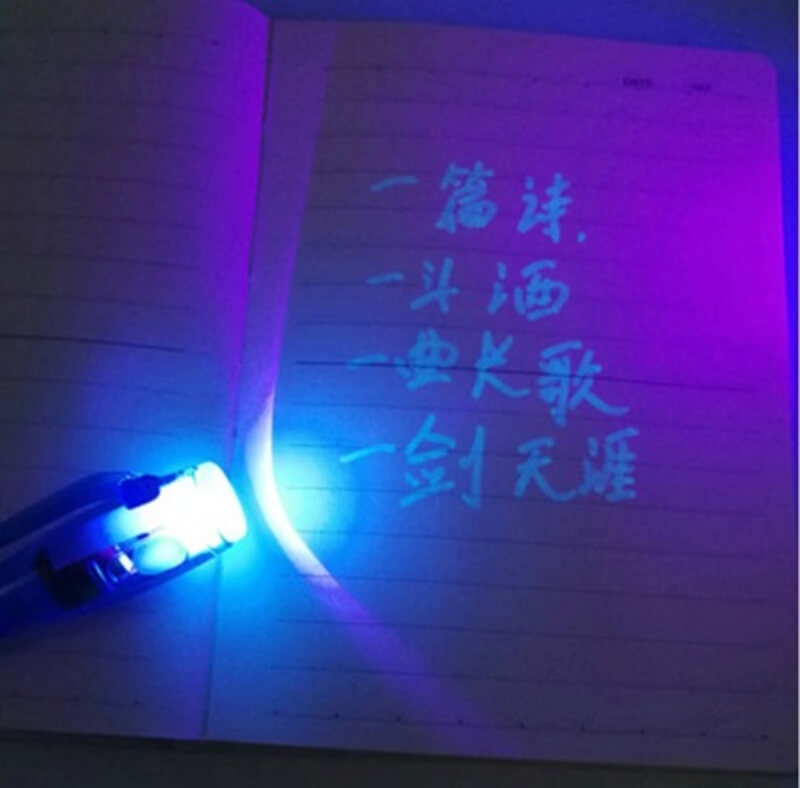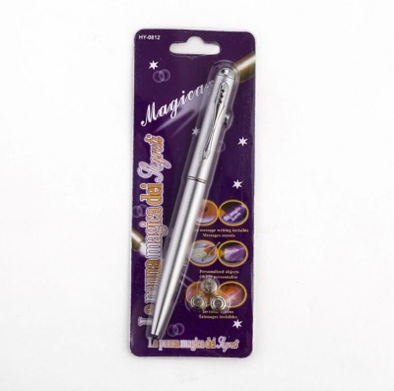 Write a secret massage using this magic pen with light. That massage is only visible by LED UV light present on the top of the pen. The blue ink disappears automatically after 20 minutes without leaving any trace behind.