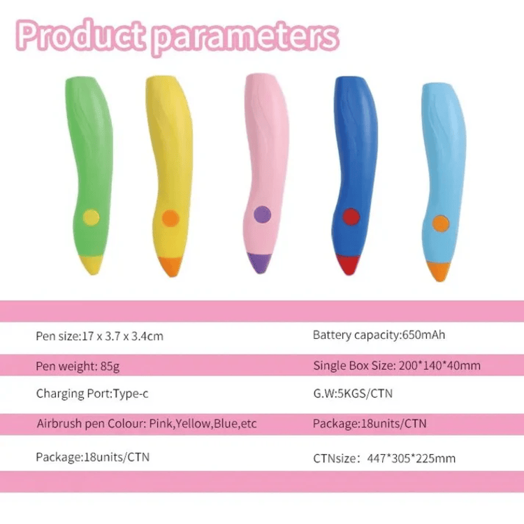 The rechargeable electric airbrush pen gives full coverage. Spray from far or close to get different effects. Our airbrush pen is suitable for people of all ages to use safely.