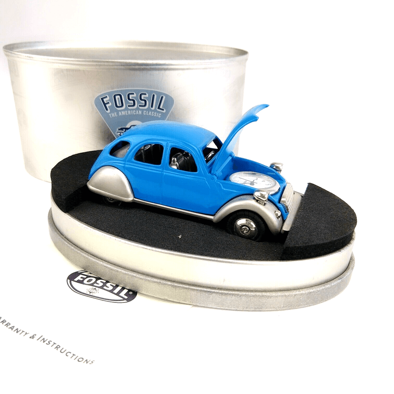 - Rubber wheels that roll and a quality quartz clock tucked in car's front door.