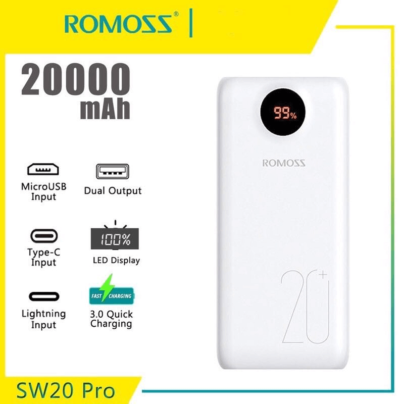 - 3 USB outputs of Romoss Fast Charger/ Power Bank enable you to charge a mobile phone, tablet, or a Nintendo Switch simultaneously at maximum speed.