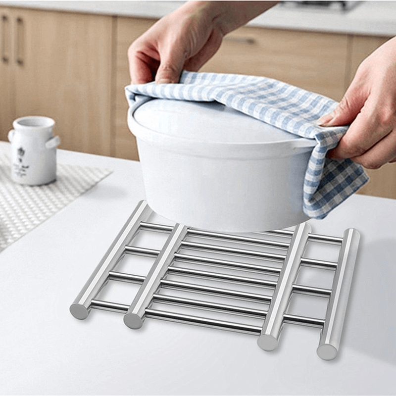 This metal trivet can bear a good amount of weight. You can keep your lightweight cupcakes tray on it and also heavy pots with having a large quantity of food in it. IT is resistant to rust and corrosion. It is durable and non-deformable. IT is environment-friendly and safe to use. It is convenient to use. You can use it while serving your guests. It saves a lot of space on the table and also keeps the serving area neat. Keep it in the drawer for storage. Folding it makes the storage convenient.