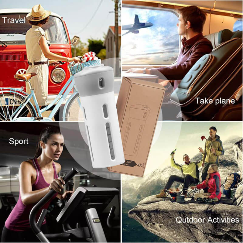 - Leak Proof Bottles Set, 4 Refillable Travel Bottles In One Case